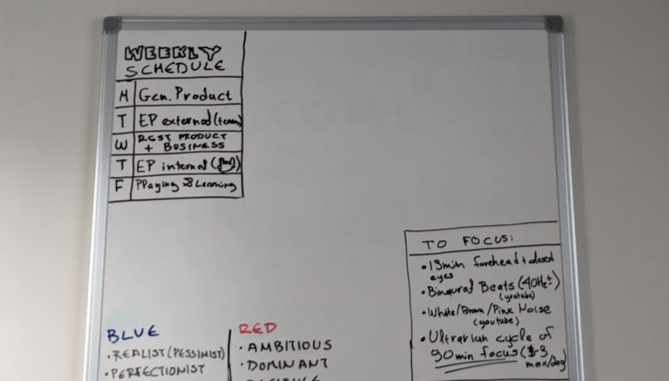 Cal Newport talks about the importance of meditation to get into the right state of mind for deep work. An extra method I try to apply is some advice from Andrew Huberman, specifically advice stated in this episode on focus. Following this episode I’ve noted down this fast track of getting into the focus zone: