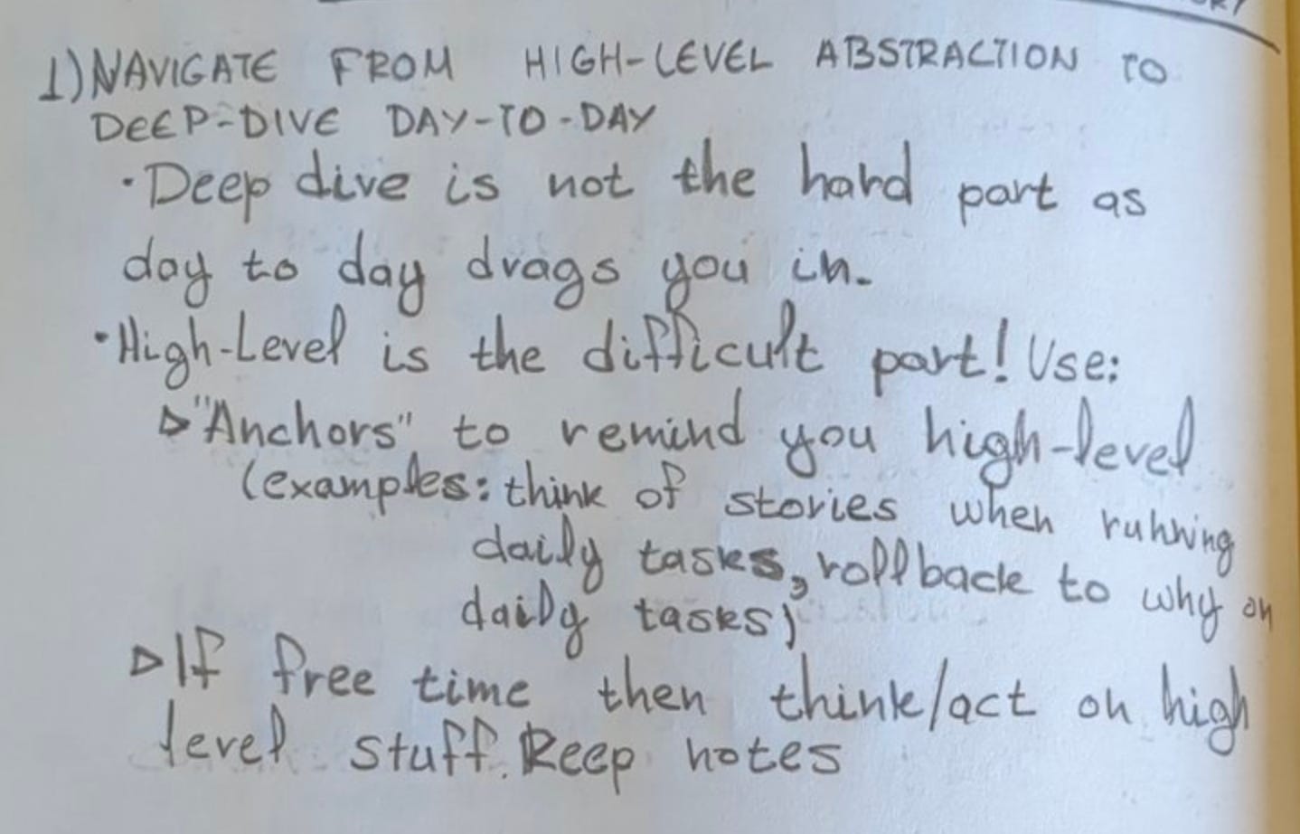 In this post will be sharing some ways to balance that act between high-level thinking and deep diving. Not sharing anything revolutionary, just reminders and personal implementation.